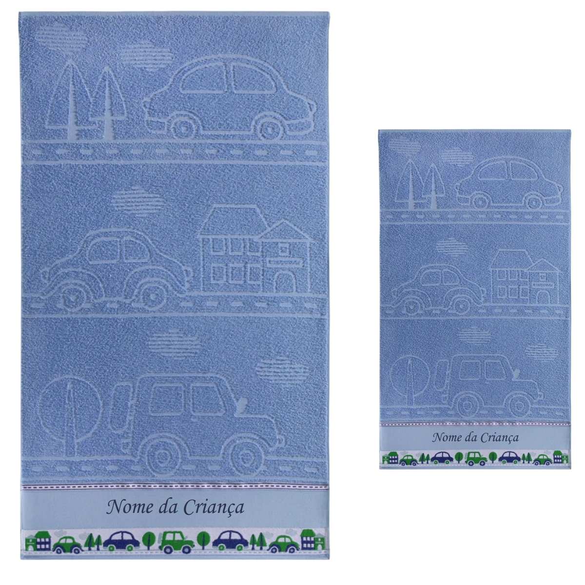 JOGO COM TOALHA DE BANHO INFANTIL E TOALHA DE ROSTO + NOME DA CRIANÇA